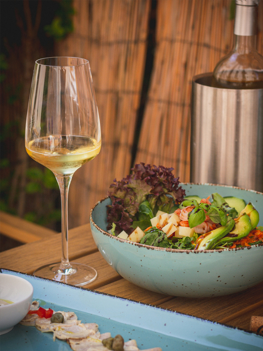 Ein harmonisches Zusammenspiel aus frischen Zutaten, liebevoll angerichtet auf feinem Porzellan. Zartes Hühnerfilet auf cremigem Risotto mit einer feinen Kräutersauce, dazu ein kleiner Blattsalat und frisches Baguette. Perfekt für eine Mittagspause voller Geschmack und Leichtigkeit.